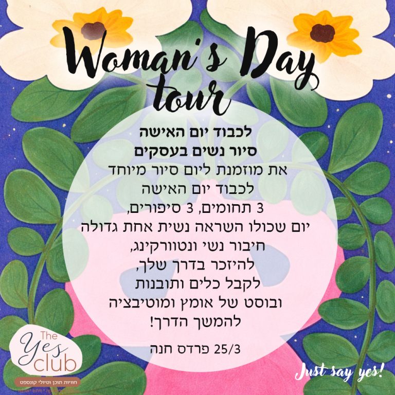 לכבוד יום האישה – "סיור נשים יזמיות בעסקים" 25/3 את מוזמנת ליום סיור מיוחד לכבוד יום האישה 3 תחומים, 3 סיפורים, יום שכולו השראה נשית אחת גדולה.חיבור נשי ונטוורקינג, להיזכר בדרך שלך, לקבל כלים ותובנות