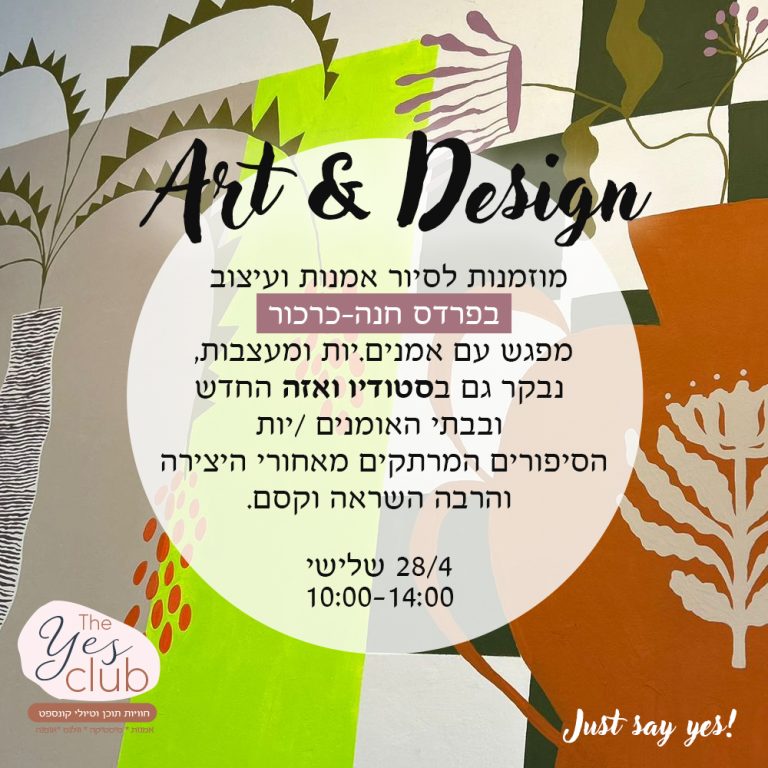 Art & Design סיור אמנות בשרון – עמק חפר | 18.2 יש סיור חדש!אמנות ועיצוב בעמק חפר, בלב השרון בין מושבים שקטים, שבילים ירוקים ומלא פרדסים מסתתרות אוצרות אמיתיות.נשים יוצרות, עם ידיים טובות, לב פתוח,