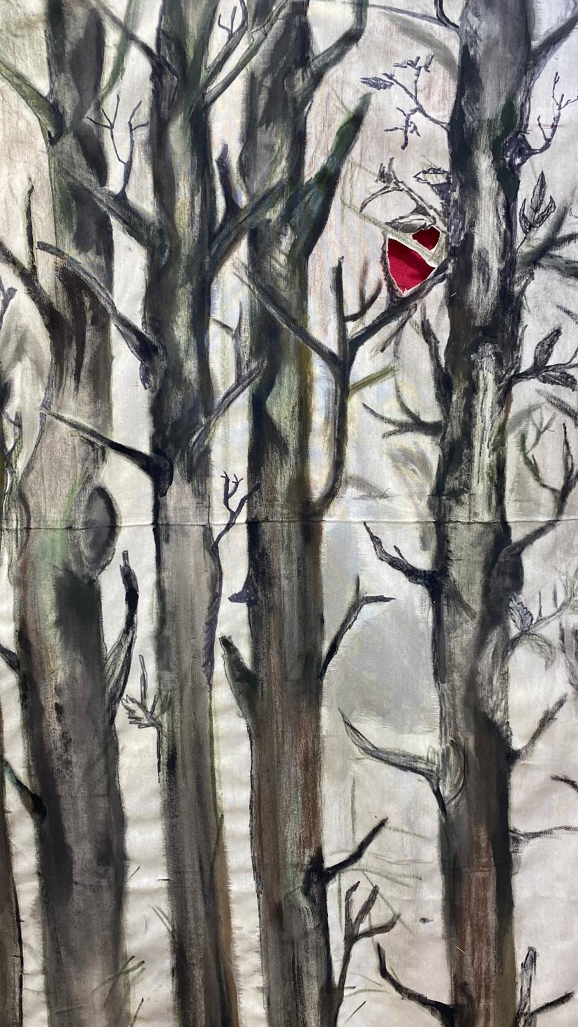 אמנית יוצאת דופן שיוצרת עבודות ענק על בדים,  ציור, רקמה, שכבות של רגש ויופי.